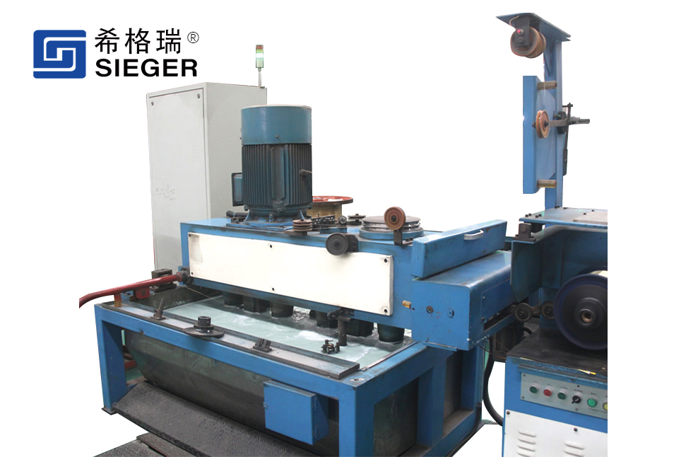 切割鋼絲水箱機(jī)專(zhuān)門(mén)拉拔電鍍黃銅切割鋼絲,成品鋼絲直徑0.06mm至0.18mm。拉拔27/29道次。TB4翻轉(zhuǎn)水箱拉絲機(jī)專(zhuān)門(mén)拉拔各種鋼簾線、膠管鋼絲、鋼絲繩等各種細(xì)規(guī)格鋼絲,成品鋼絲直徑0.15mm至0.38mm。拉拔19/21/23道次。